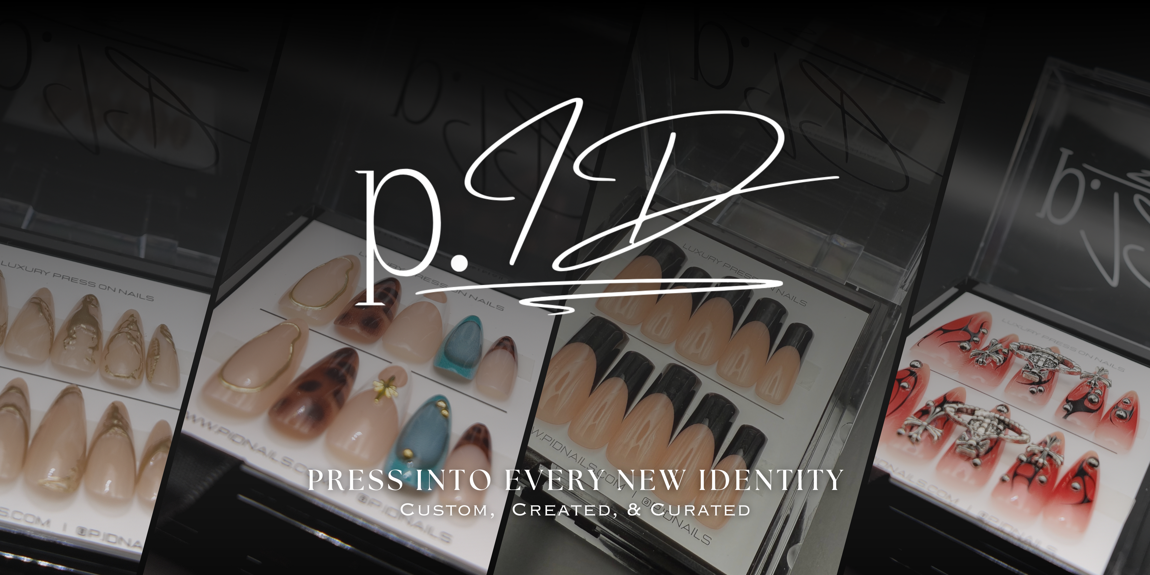 Redefining the press-on nail experience with a bold mix of luxury, convenience, and creativity. p.ID ffer a curated collection of luxury press-on nails — blending the best of high-quality, premade sets and custom handmade designs crafted by a licensed nail technician. Every set is selected and created with care to give you salon-quality nails that last, without the salon wait.